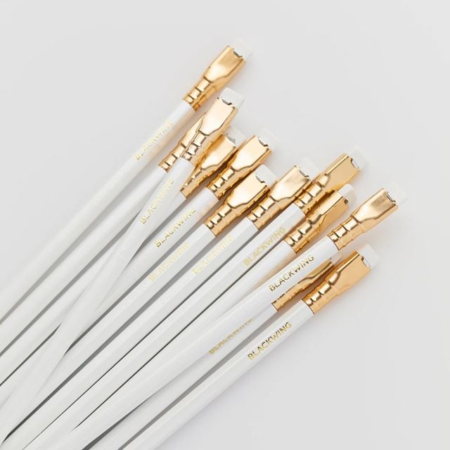 The Pearl Pen features a pearl white finish, gold imprint, white eraser and a medium soft graphite core. Ideal for typographers, illustrators, writers.