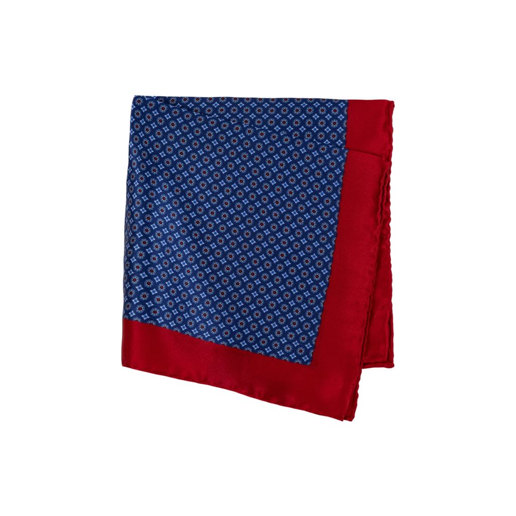 Red silk pocket square with flowers