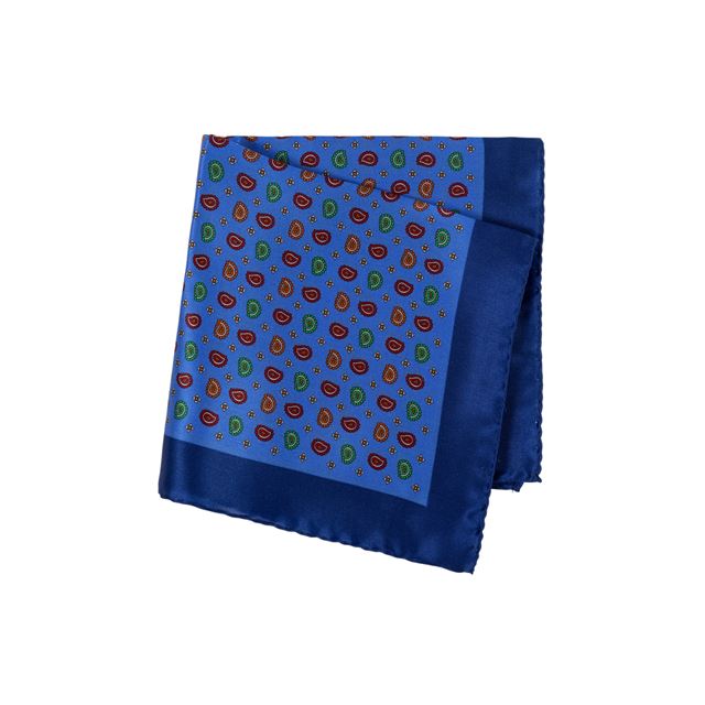 Pañuelo de bolsillo con diseño cachemire y borde en azul marino