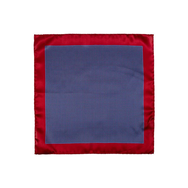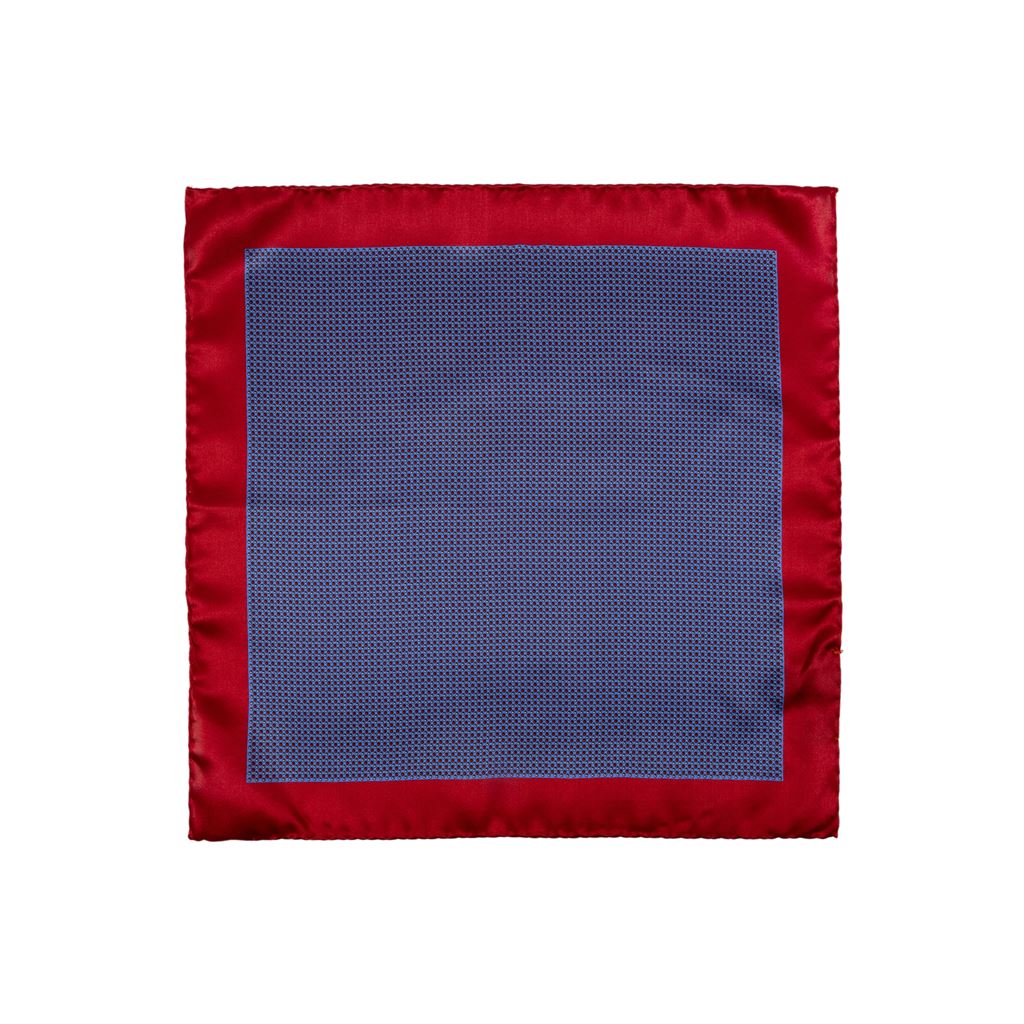 Pañuelo de bolsillo con diseño circular en fondo azul y borde en rojo