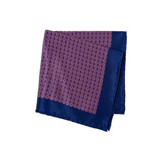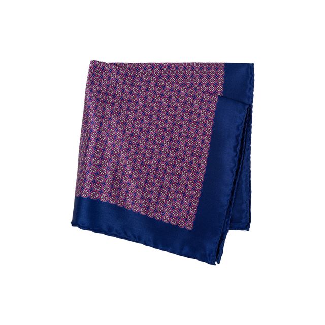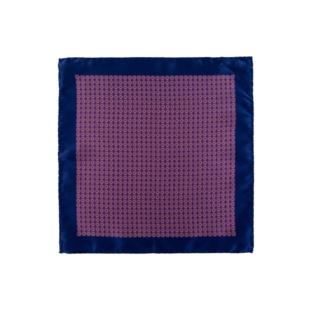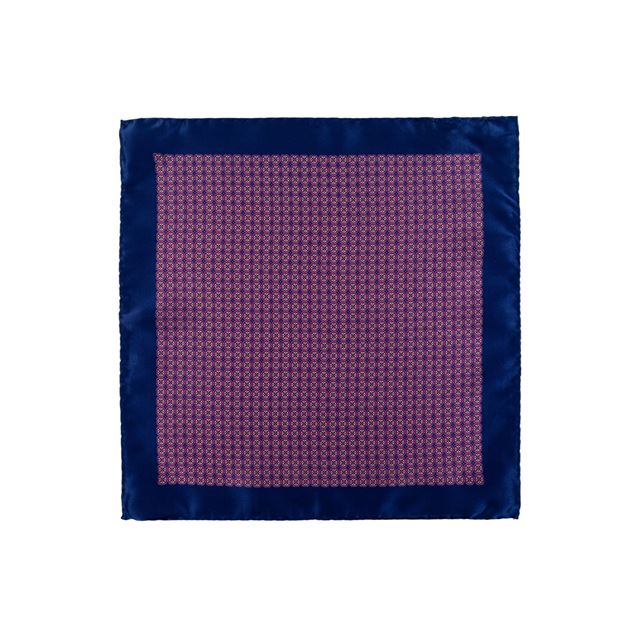 Pañuelo de bolsillo con diseño cachemire en fondo rosa intenso y borde azul