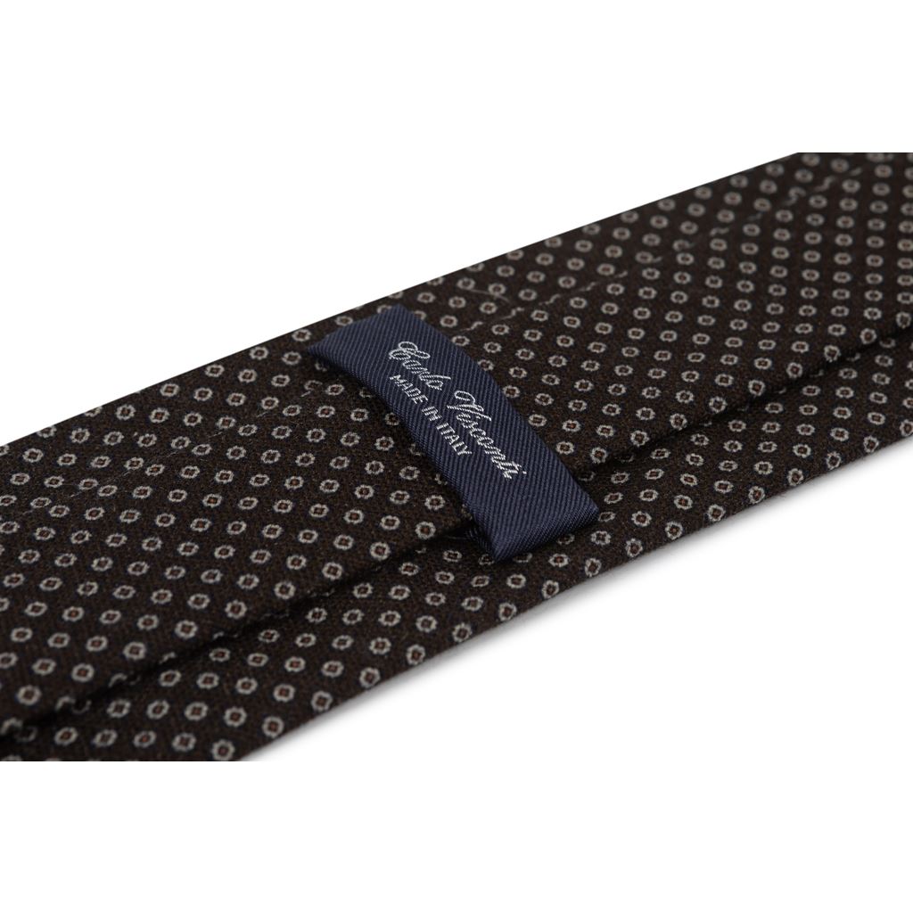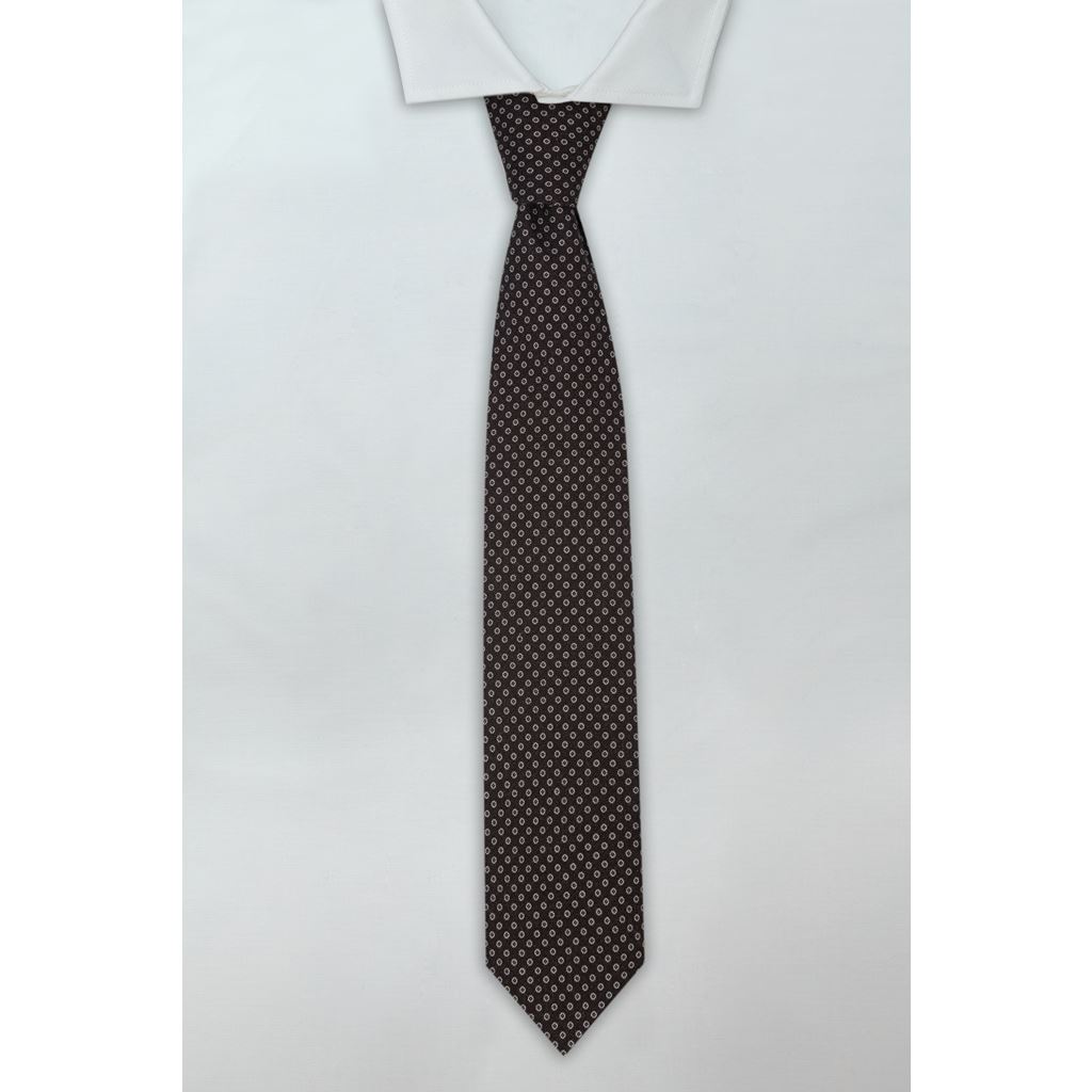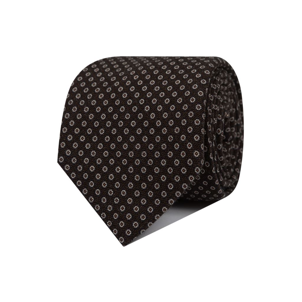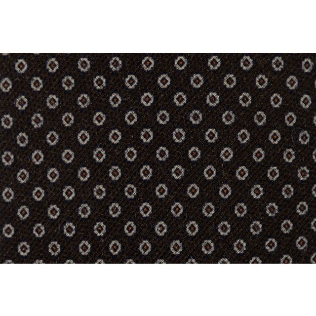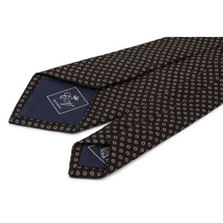 Corbata lana fondo marrón con dibujo margarita color beige sobre fondo negro