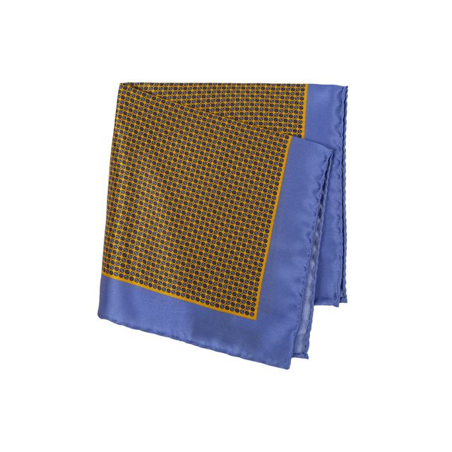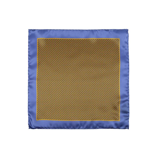 Fazzoletto da taschino con disegno geometrico su sfondo giallo e bordo blu