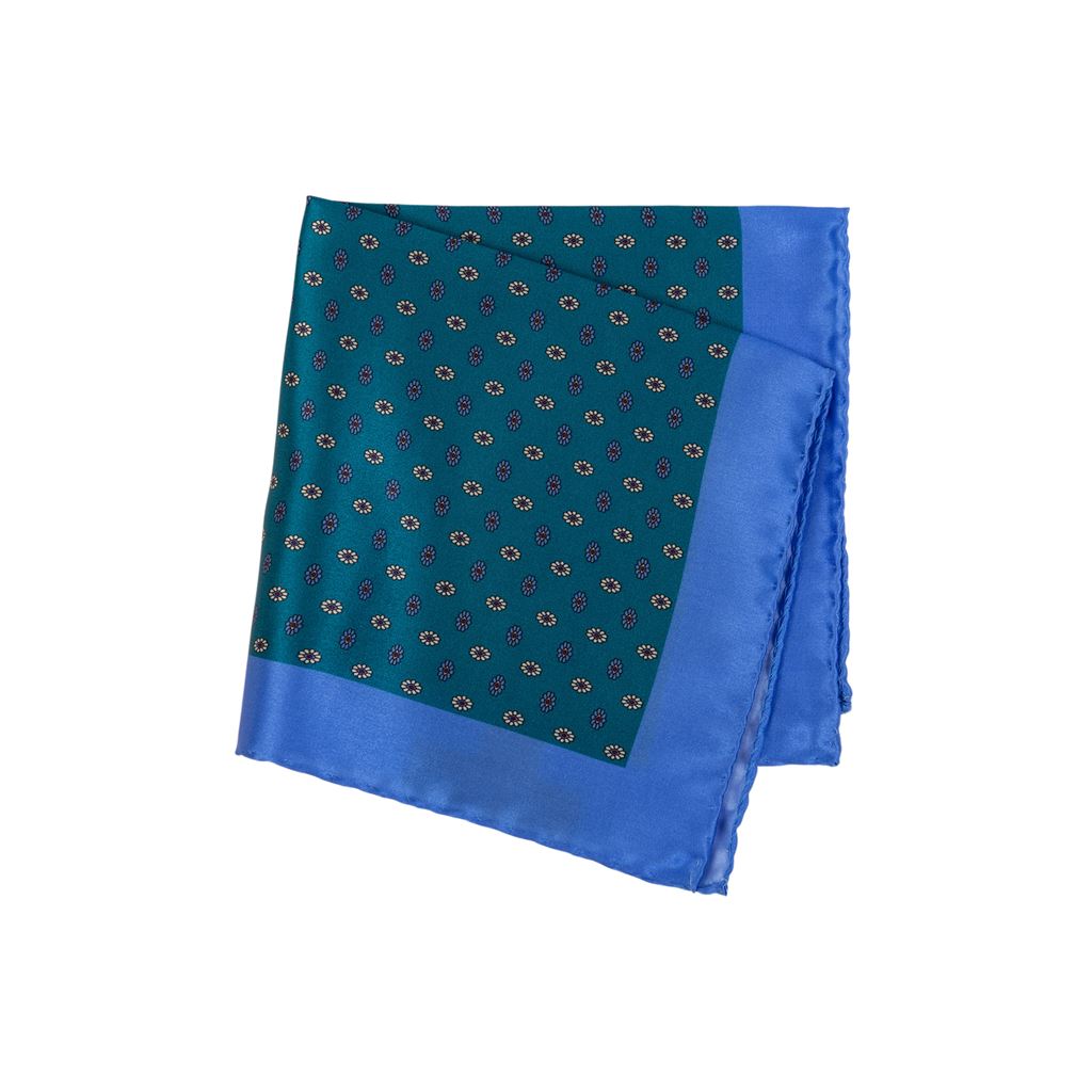 Fazzoletto da taschino con motivo floreale su sfondo blu e bordo giallo